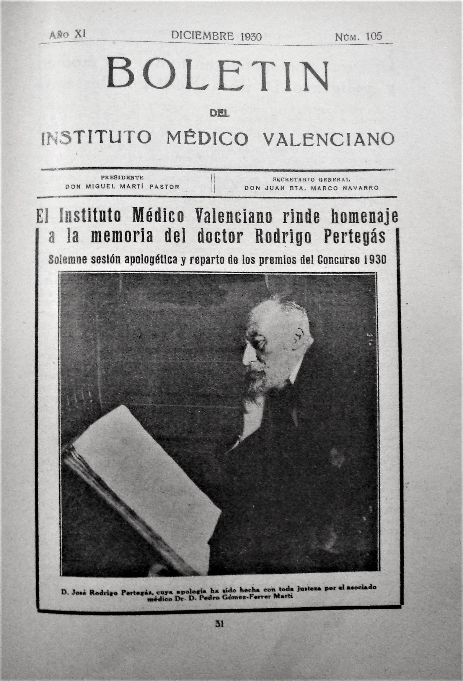 2. Homenatge a Josep Rodrigo Pertegàs al Boletín del Instituto Médico Valenciano (desembre 1930).